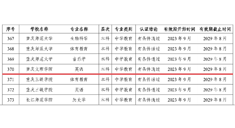 近日,教育部办公厅公布了2023年通过普通高等学校师范类专业认证的专业名单(教师厅函〔2023〕24号),经学校申请、自评自建、市教委指导、市教育评估院组织专家进校考查和教育部普通高等学校师范类专业认证专家委员会审定,beat365官网英语专业高质量通过教育部师范类专业第二级认证。