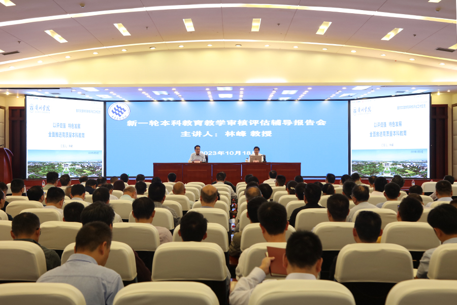 10月18日下午,学校召开本科教育教学审核评估辅导报告会。衢州学院教务处处长、教育部审核评估专家林峰教授为学校作了题为“以评促强、特色发展,全面推进高质量本科教育”的报告。全体在家校领导、科级及以上干部及各二级学院教研室主任、教学秘书等共计近400人,分别在恪勤楼304主会场和博文馆101分会场聆听报告。会议由副校长漆新贵主持。