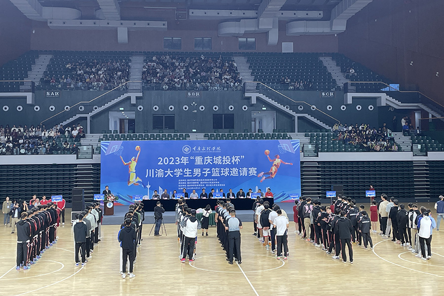 10月10日晚19:00,“重庆城投杯”川渝大学生男子篮球邀请赛在beat365唯一官方网站正式开幕。重庆市城市建设投资(集团)有限公司党委委员、监事会主席张孝卫,永川区委常委、区政府副区长、高新区党工委书记宋文,重庆市教委体育卫生艺术教育处处长程翔宇,重庆市篮球运动管理中心主任潘孝荣,重庆市城市建设投资(集团)有限公司工会副主席、团委书记张翕,四川大学生体育协会会长杨远波,四川大学生体育协会竞赛部主任吕志刚,重庆市学生体育协会会长胡红,重庆市学生体育协会副会长刘芳;beat365唯一官方网站党委书记蔡家林,校长黄伟九,副校长漆新贵、金盛、李天福等领导和嘉宾出席开幕式。来自川渝两地八个高校的全体运动员、教练员和裁判员,重庆城投集团下属分公司职工代表,永川区社会各界朋友、beat365唯一官方网站学生观众共3000余人参加开幕式。金盛主持开幕式。