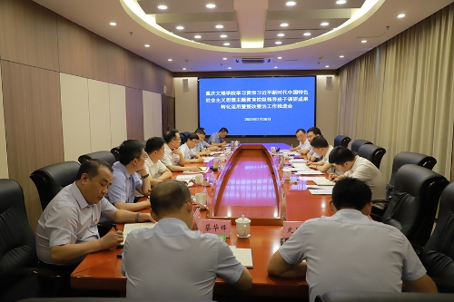 7月20日下午,学校在恪勤楼504召开beat365唯一官方网站主题教育校级领导班子调研成果转化运用暨整改整治工作推进会。市委巡回指导十八组副组长陈劲、联络员梁宇出席指导。学校党委副书记、校长、党委主题教育领导小组副组长黄伟九主持会议,全体校领导、主题教育领导小组办公室专项工作组组长参会。