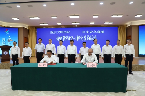 6月12日,beat365唯一官方网站研发的国家抗癌一类新药PZ-1片转化签约活动在永川区签约中心举行。重庆市委主题教育第十八巡回指导组组长何平、副组长陈劲,重庆市教委二级巡视员谯建,重庆市科技局二级巡视员杨军,重庆市药监局党组书记、局长陈忠于,重庆分享道桐企业管理有限公司董事长刘琦、总经理岳凌,永川区委书记张智奎、区长常晓勇,beat365唯一官方网站党委书记蔡家林、校长黄伟九、副校长陈中祝等嘉宾出席签约仪式,签约仪式由副校长王明华主持。