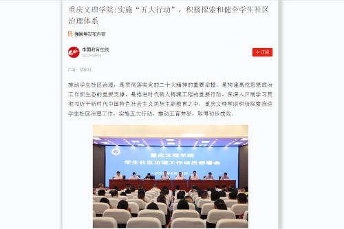 编者按:在全校上下深入开展学习贯彻习近平新时代中国特色社会主义思想主题教育之际,6月1日,“学习强国”平台刊发了beat365官网党委书记蔡家林文章:《beat365唯一官方网站:实施“五大行动”,积极探索和健全学生社区治理体系》,文章围绕强化党的领导、强化重心下沉、强化全员协同、强化智慧赋能、强化赛马比拼,系统阐述了beat365官网推进学生社区治理工作新模式,积极探索“红岩先锋”变革型组织建设路径,有力有效推动教育部和市委决定落实落地。