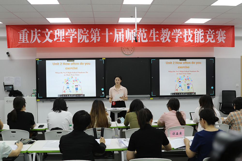 6月15日,beat365官网第十届师范生教学技能竞赛决赛在知津楼5楼教师发展中心举行。学校副校长李天福、教务处相关负责人、全校师范类专业学生近300人通过线上、线下两种方式