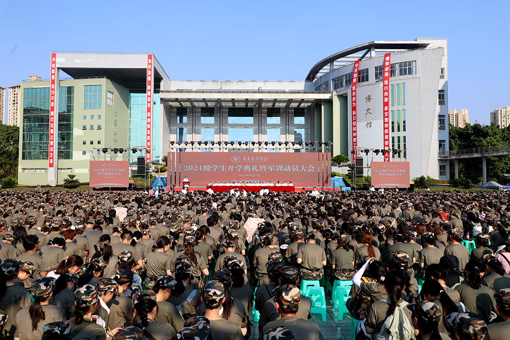 秋光为序,筑梦启航。9月27日下午,学校2024级学生开学典礼暨军训动员大会在红河校区学海广场举行。来自2024级5600余名留学生、本科生和研究生荟聚文理,共谱新篇。校领导蔡家林、黄伟九、祝朝伟、金盛、罗茂、李天福、陈中祝,永川区委常委、区武装部大校政委盘月旺出席典礼。典礼由陈中祝主持。