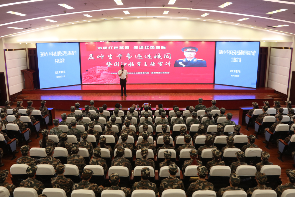 10月13日下午,在2024级本科学生军训期间,学校精心策划并举办了一场别开生面的红色主题思政课——“聂帅生平事迹进校园暨国防教育专题宣讲”。思政课在恪勤楼304会议室举行。