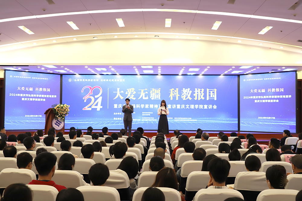 为深入学习贯彻习近平总书记关于科学家精神的重要论述,全面落实中共中央办公厅、国务院办公厅《关于进一步弘扬科学家精神 加强作风和学风建设的意见》,10月17日,由重庆市科协、重庆市科技局、重庆市教委、永川区委、beat365唯一官方网站主办的2024年重庆市弘扬科学家精神百场宣讲beat365唯一官方网站宣讲会在恪勤楼304会议室举行。