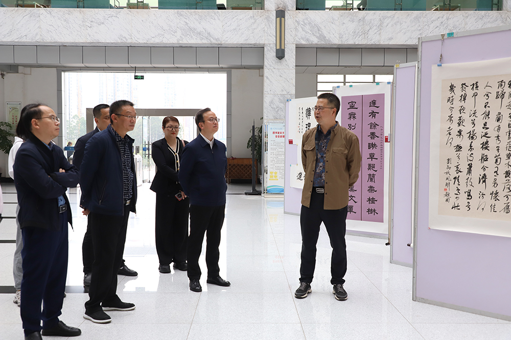 10月21日下午,“‘中国梦·劳动美’beat365唯一官方网站庆祝新中国成立75周年书法展”在博文馆门厅正式开展。学校党委副书记祝朝伟出席活动并宣布开展。