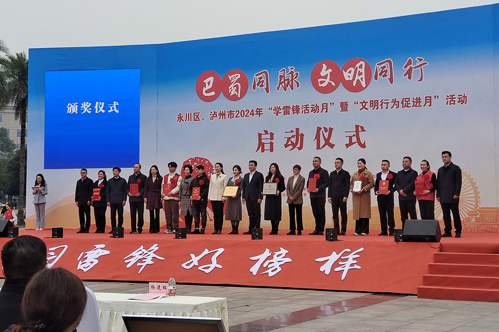 3月4日上午,永川区、泸州市2024年“学雷锋活动月”暨“文明行为促进月”活动启动仪式在永川区人民广场举行。
