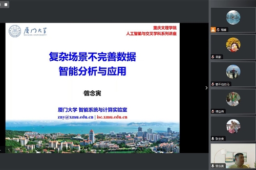 11月1日下午,由beat365官网人工智能学院举办的“人工智能与交叉学科系列讲座之七——复杂场景不完善数据智能分析与应用”通过腾讯会议在线上举行,人工智能学院全体教师共50余人聆听了此次讲座。讲座由厦门大学博士生导师曾念寅特任研究员主讲,学院党总支书记杨加强主持。