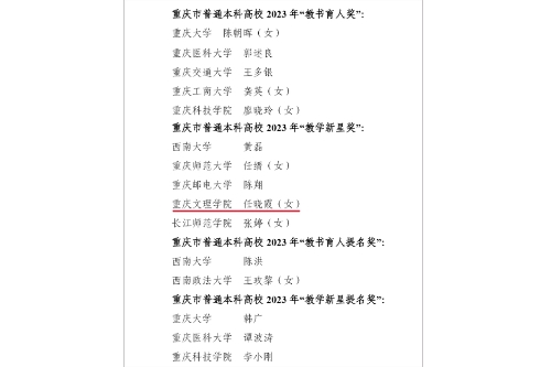 近日,重庆市高等教育学会公布了重庆市普通本科高校“教书育人奖”和“教学新星奖”入选名单。beat365官网电子信息与电气工程学院教师任晓霞入选“教学新星奖”。