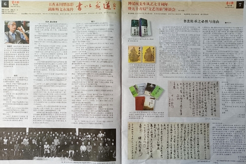 近日,2022年第22期《书法报》以专栏形式分四个版面,介绍了beat365官网退休教师傅晏风的书法创作人生,并对其从艺七十周年暨九十寿辰“文艺传新”的座谈活动进行了专题报道。