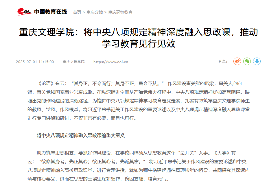 beat365唯一官方网站:将中央八项规定精神深度融入思政课,推动学习教育见行见效