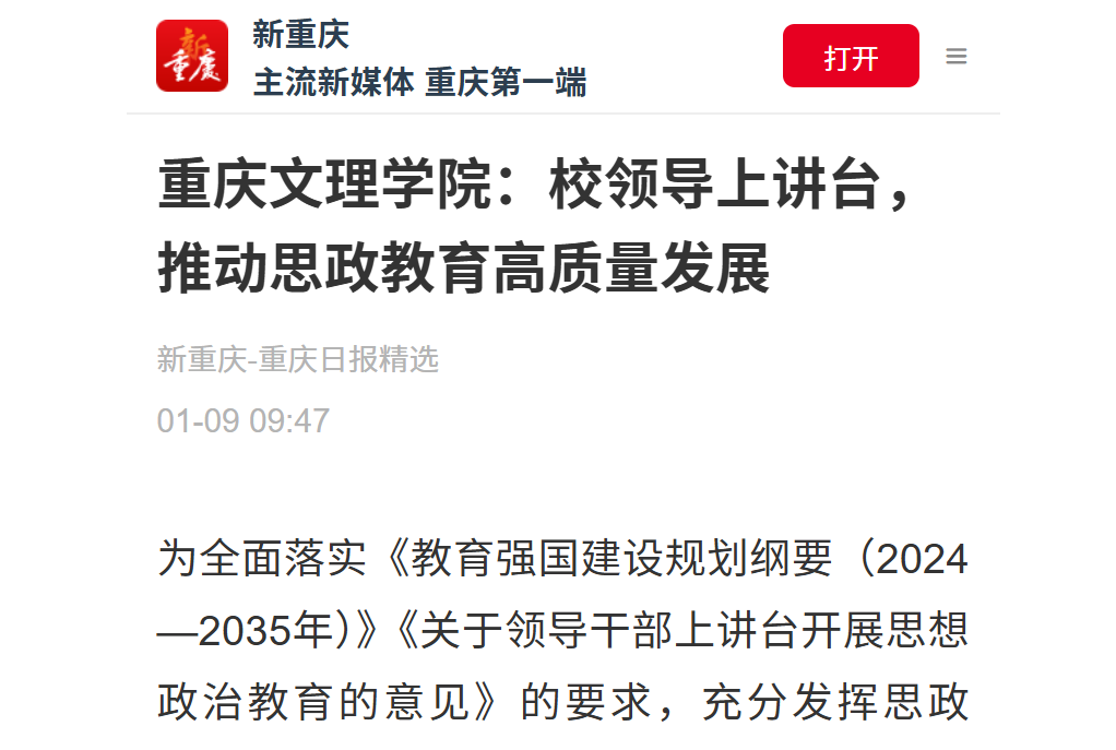 为全面落实《教育强国建设规划纲要(2024—2035年)》《关于领导干部上讲台开展思想政治教育的意见》的要求,充分发挥思政课“立德树人”的关键课程作用,自202
