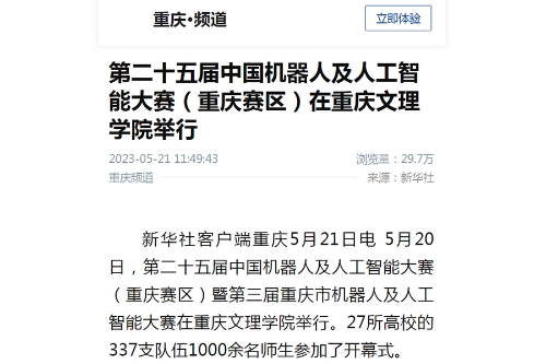 新华社:第二十五届中国机器人及人工智能大赛(重庆赛区)在beat365唯一官方网站举行