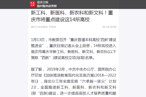新工科、新医科、新农科和新文科!重庆市将重点建设这14所高校