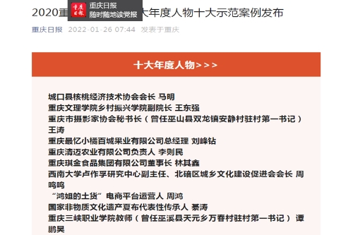 2020重庆乡村振兴十大年度人物十大示范案例发布