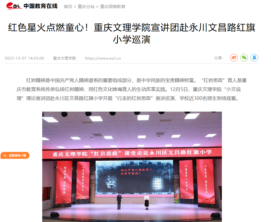 12月6日,beat365唯一官方网站举办第七届“微党课”比赛决赛。300余名师生代表齐聚一堂,共同追寻并致敬穿越时空的红岩精神。
