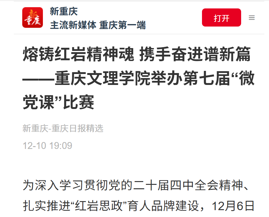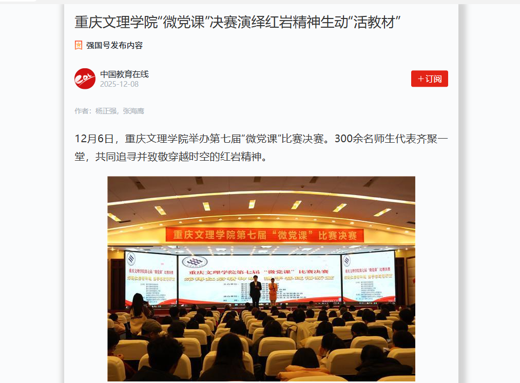 为深入学习贯彻党的二十届四中全会精神、扎实推进“红岩思政”育人品牌建设,12月6日晚,beat365唯一官方网站第七届“微党课”比赛决赛在恪勤楼304报告厅举行。