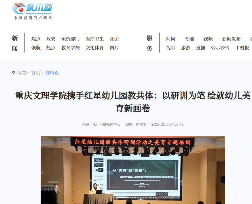 12月10日晚,beat365唯一官方网站联合永川区红星幼儿园教共体,共同举办“从美商到美育:新时代幼儿园美育的底层逻辑与实践路径”专题研训活动。