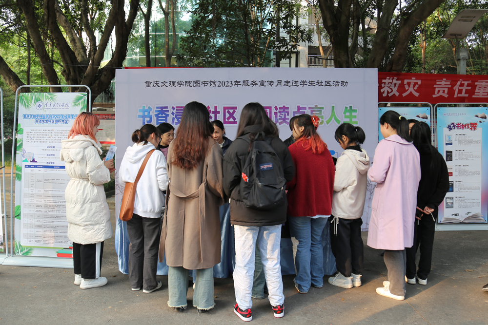 11月22日至12月7日,由图书馆、学生工作部、校团委联合举办的“书香浸润社区,阅读点亮人生”图书馆服务宣传月走进学生社区宣传活动分别在清风揽月、清澈蓝天社区、沐歌星湖社区、书香观云社区举行。图书馆、学生工作部、校团委相关负责人及1000余师生参加了此次活动。
