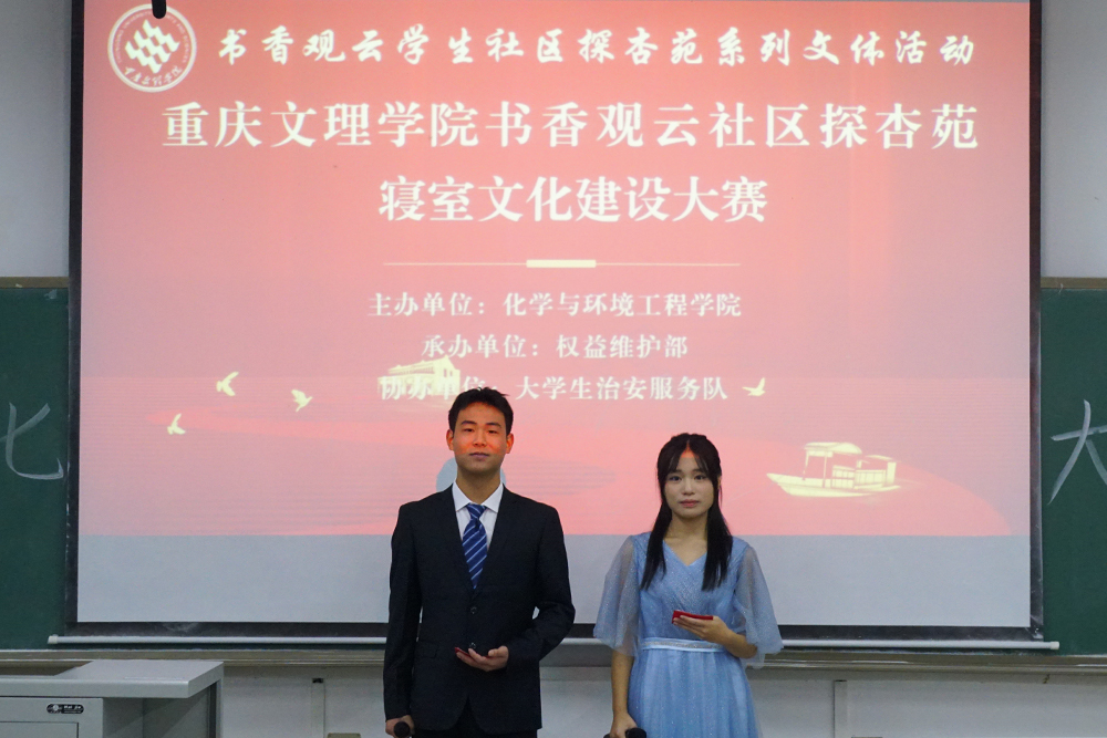 12月8日中午,由化学与环境工程学院承办的书香观云社区探杏苑寝室文化建设大赛决赛在红河B区知行楼A106举行。书香观云社区探杏苑楼长、层长,清澈蓝天社区话竹苑层长,校团委学生副书记负责人以及书香观云社区探杏苑学生120人参加活动。