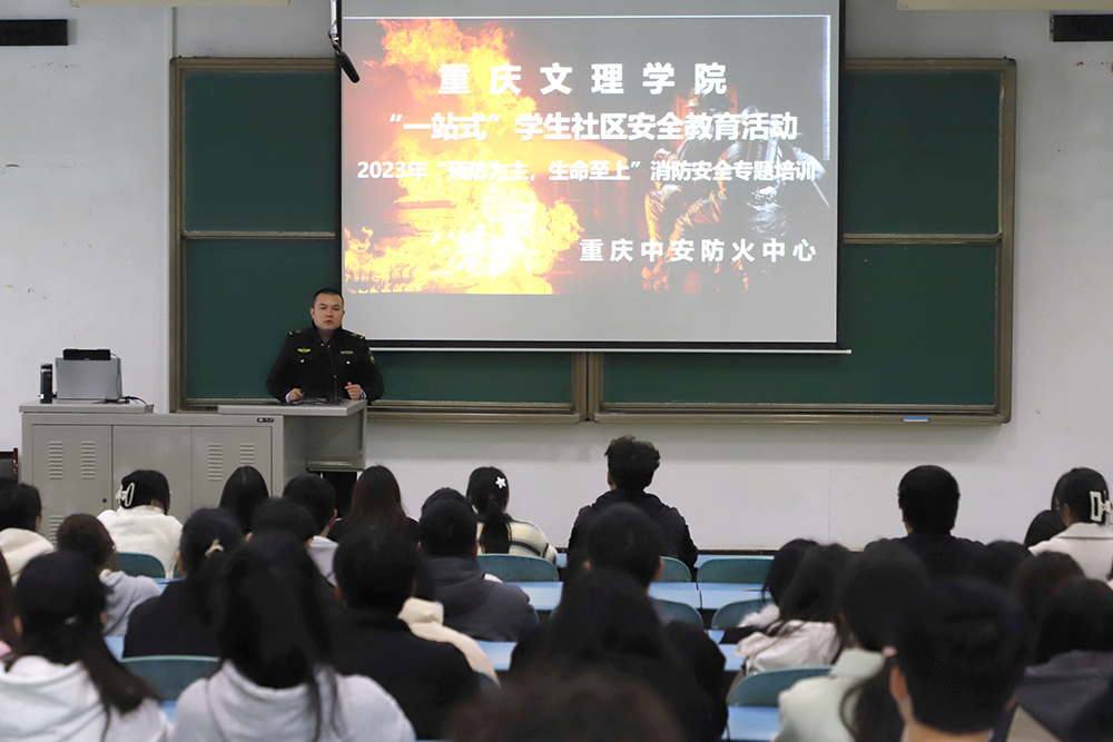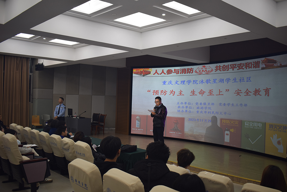 为进一步做好学生社区治理工作,推动安全教育工作落地见效,结合beat365官网2023年度“119”消防宣传月活动,11月15日下午,党委保卫部邀请专职消防教官蒋银银在红河一阶梯教室开展“一站式”社区治理安全教育活动。学生一、二、三社区层长及2023级新生代表共计300余人参加。