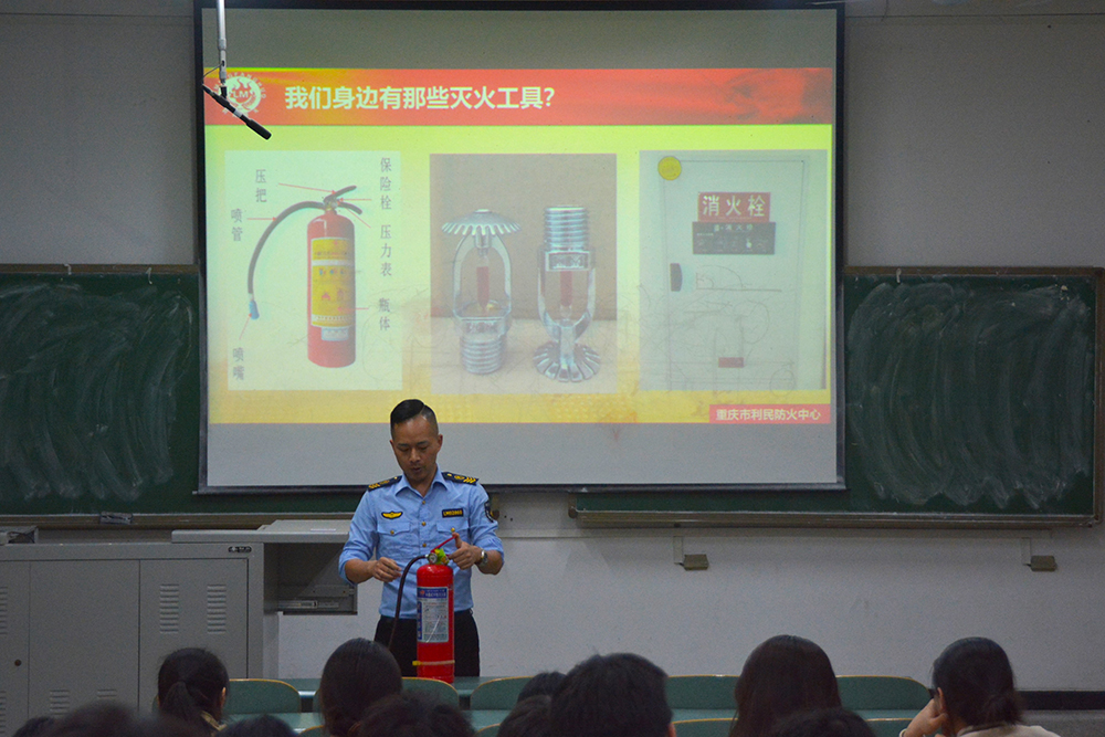 近日,书香观云社区实验室安全及寝室消防应急培训演练在红河B区开展。本次活动邀请重庆市利民防火中心教官为学校师生进行消防安全培训,书香观云社区探杏苑苑长、楼长以及安全管理处相关负责人参加活动,书香观云社区100多名学生参加培训和演练。