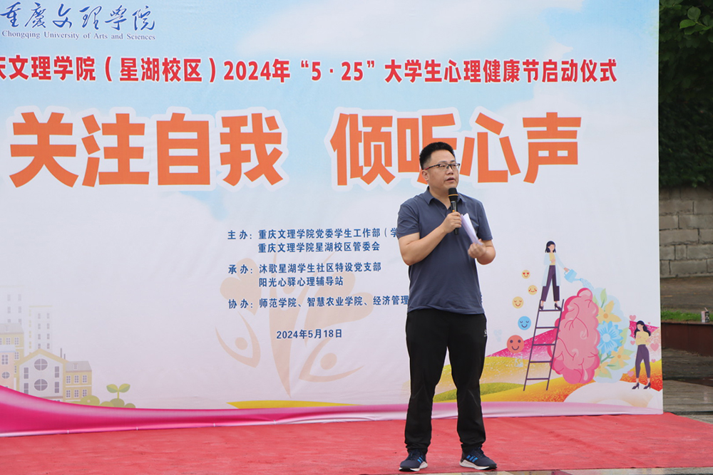 5月18日上午,由党委学生工作部、星湖校区管委会主办,沐歌星湖学生社区特设党支部、阳光心驿心理辅导站承办的“关注自我 倾听心声”5.25大学生心理健康节(星湖校区)启动仪式在星湖广场举行。