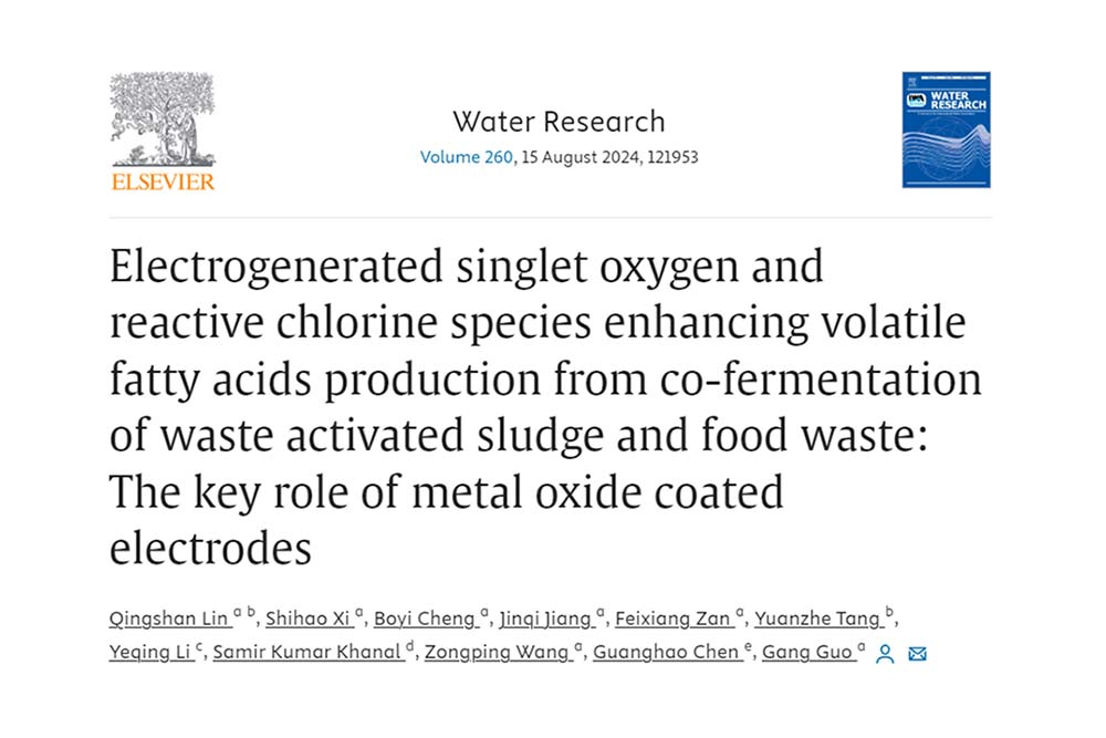 近日,beat365官网化学与环境工程学院林青山博士以第一作者在自然指数源刊《Water Research》发表了题为“Electrogenerated singlet oxygen and reactive chlorine species enhancing volatile fatty acids production from co-fermentation of waste activated sludge and food waste: The key role of metal oxide coated electrodes”的研究论文(DOI: 10.1016/j.watres.2024.121953),探究了金属氧化物涂层在电化学预处理过程中产生单线态氧(1O2)和活性氯(RCS)强化活性污泥-餐厨垃圾厌氧共发酵产挥发性酸(VFAs)的关键作用及机理。该研究为有机废物厌氧发酵的资源回收与利用方面提供了重要的参考。